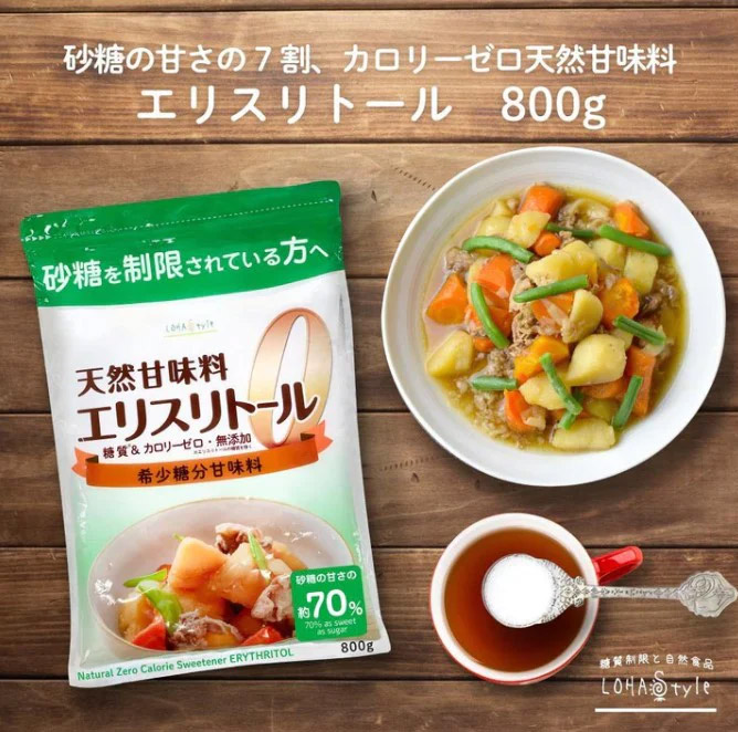 這裡說的天然甘味料,即天然甜味劑。在日本人注重體態美的文化下,人工代糖開始被視為邪惡的存在,天然甜味劑漸漸躍升成最佳替代方案。其中最為流行就莫過於稀少糖(又稱D-allulose,D-psicose)。稀少糖是非人工製造,卡路里亦比葡萄糖低,可從天然食物如無花果、提子乾、大樹菠蘿和小麥中提取,但含量並不高。
