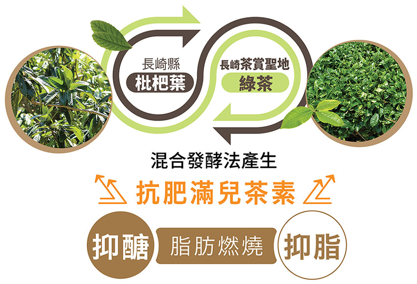 而且最特別的是,透過混合發酵法,茶葉精華會被打碎至可吸收的體積,變得可以食用。由於茶葉精華含長崎枇杷果葉與原生茶葉,同時亦具抗肥滿兒茶素,一併食用就能發揮最全面效果。